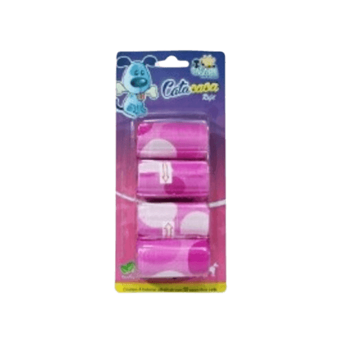 A embalagem contém 04 rolos de sacolinhas oxi-biodegradáveis com 20 saquinhos cada.
